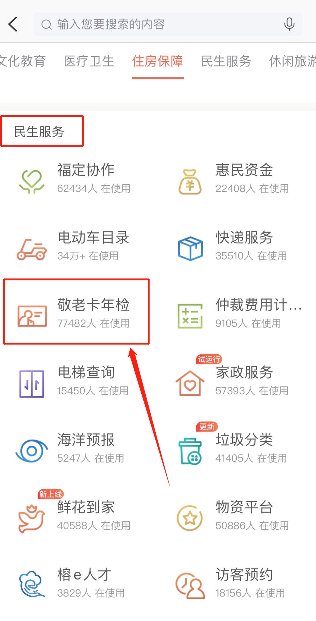 1. 打开并注册登录“e福州”APP,完成L3认证。点击首页“全部”,找到“民生服务”栏目下的“敬老卡年检”。