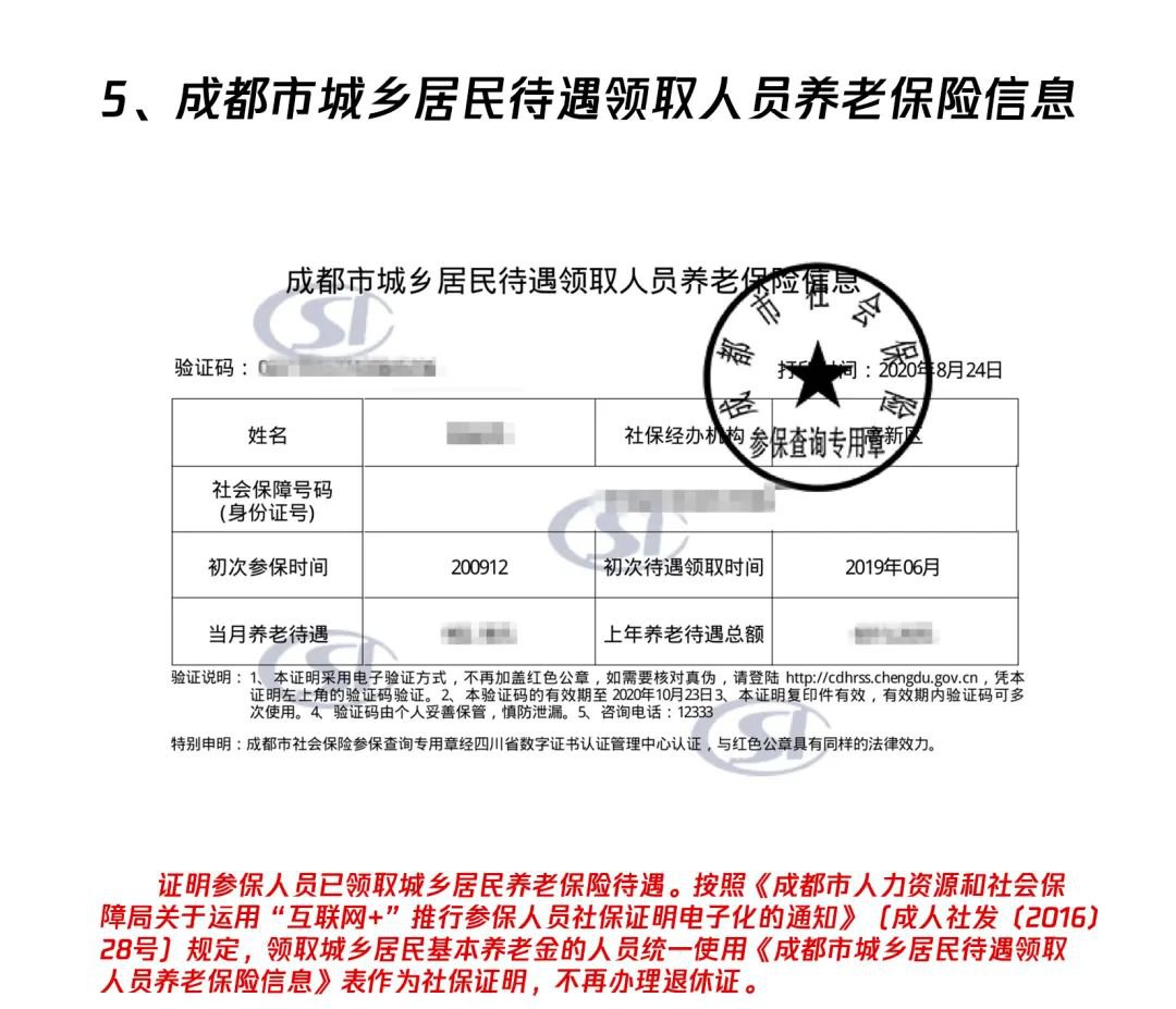 社保电子证明采用电子签章方式,“成都市社会保险参保查询专用章”经四川省数字证书认证管理中心认证,与红色公章具有同样的法律效力,社保局不再加盖红色公章。