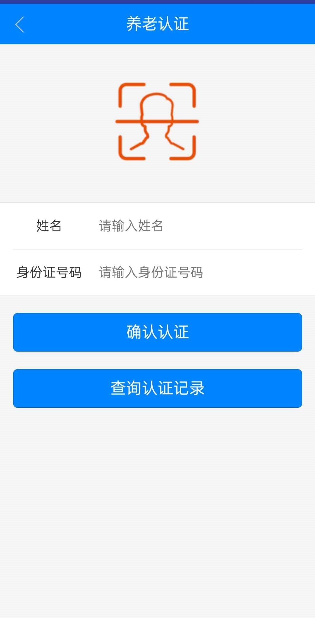 三、进入养老认证界面之后,输入姓名及身份证号码完成认证。