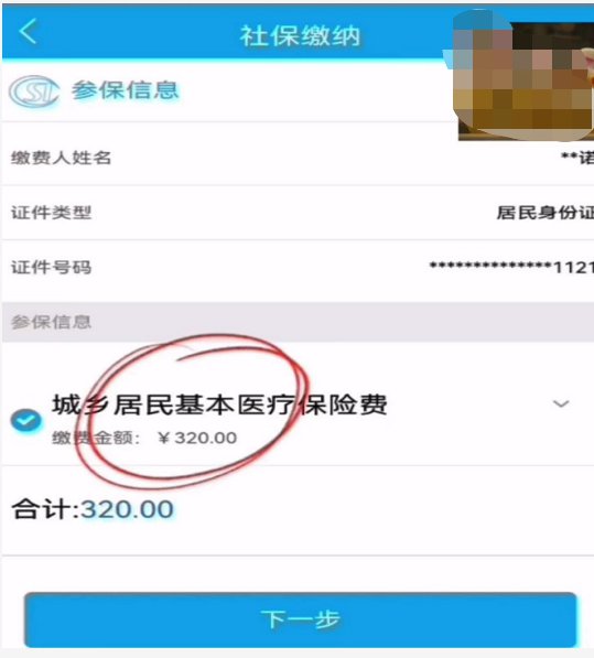5.确认缴费信息:核对缴费金额、缴费人姓名、证件类型、证件号码和险种类型,并点击下一步;