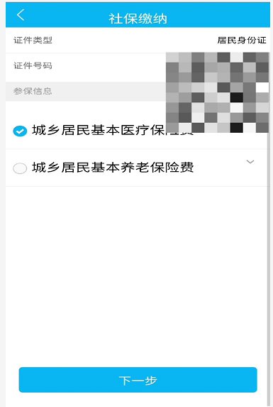 2.点击“城乡居民基本医疗保险费”,点击“下一步”。