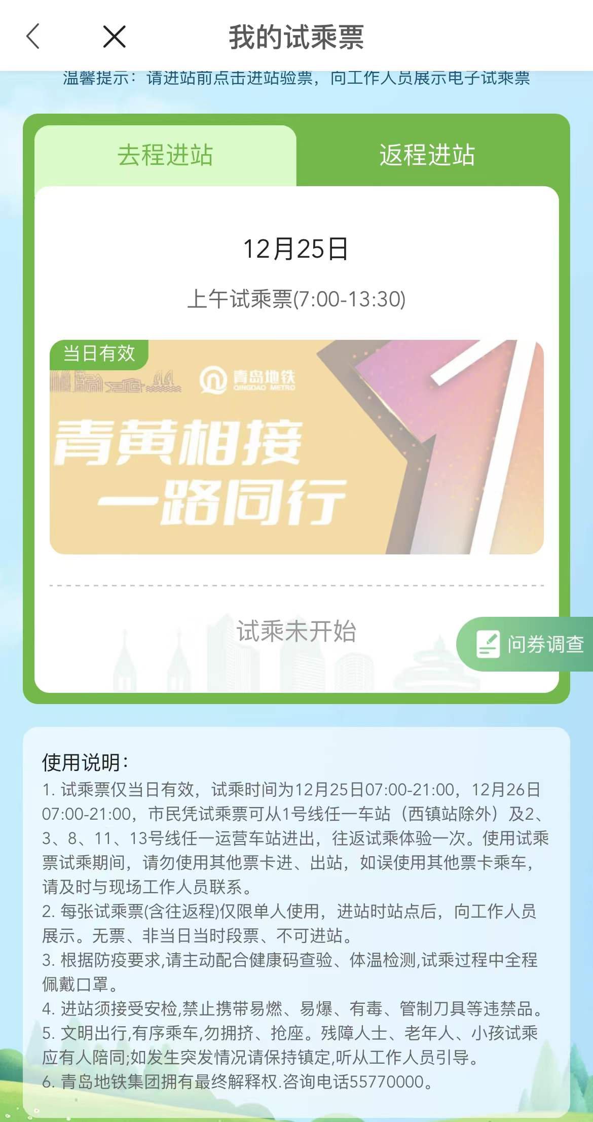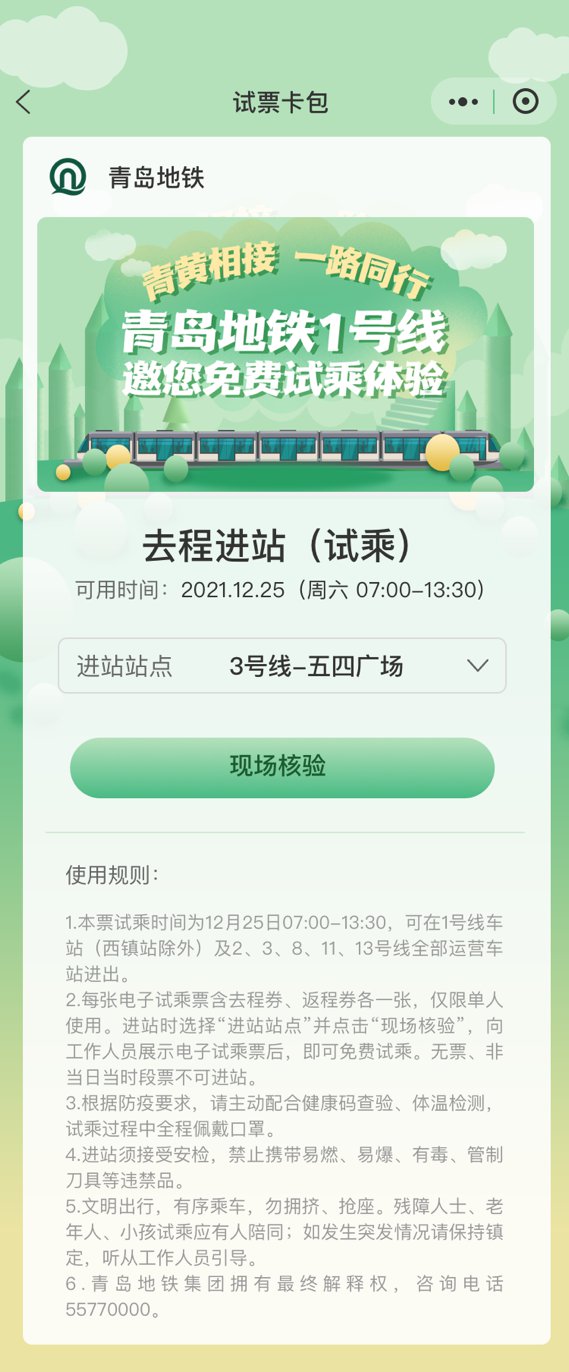 ★青岛地铁小程序抢到的电子试乘票使用方法