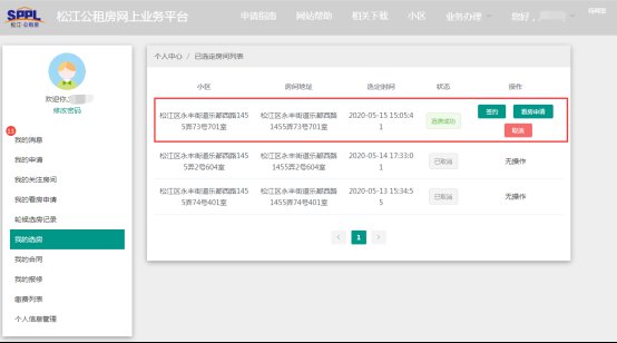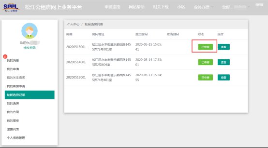 1、登录成功后,业务状态是【待网签】,这时就可以确定已经中房了。当然在这之前,中房的应该会收到提醒短信的,未中的不会有短信的,并且 登录系统后这里的状态是【待选房】。