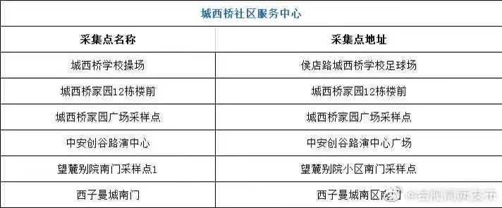 4月21日合肥高新区城西桥社区核酸采样点分布表