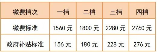 居民张某选择缴费档次“一档”,那么他需要缴纳保费为1560元,缴费到账后政府另外补贴156元,个人缴费和政府补贴全部计入其个人账户,合计1716元。