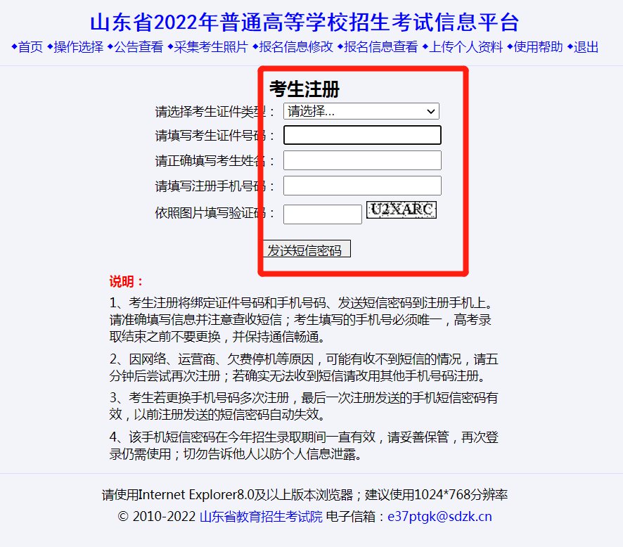 山东省高考信息平台(http://wsbm.sdzk.cn)