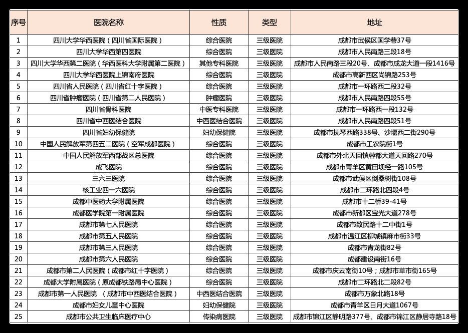 附:表二:惠蓉保特定高额药品费用(保险责任二)约定的医院列表