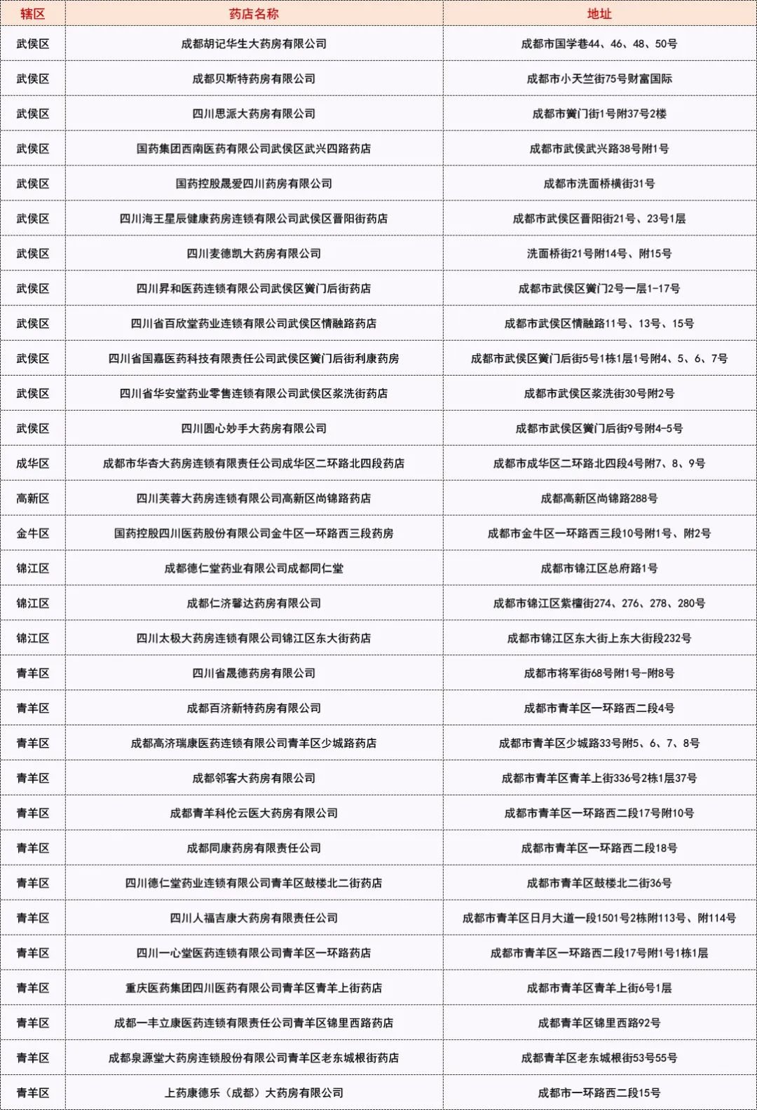 为方便患者院外购药,特指定以下列示的成都本地药店,在指定药店购买《惠蓉保特定高额药品目录》的药品费用在符合本产品报销范围内的费用可以报销。