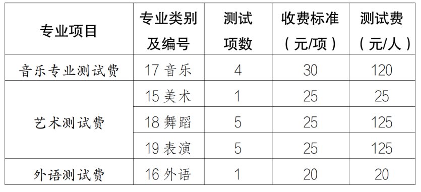 报名考务费和专业测试费执行省物价局、省财政厅《关于中等职业学校对口升学招生报名考试收费的通知》(晋价费〔2003〕372号)的规定。