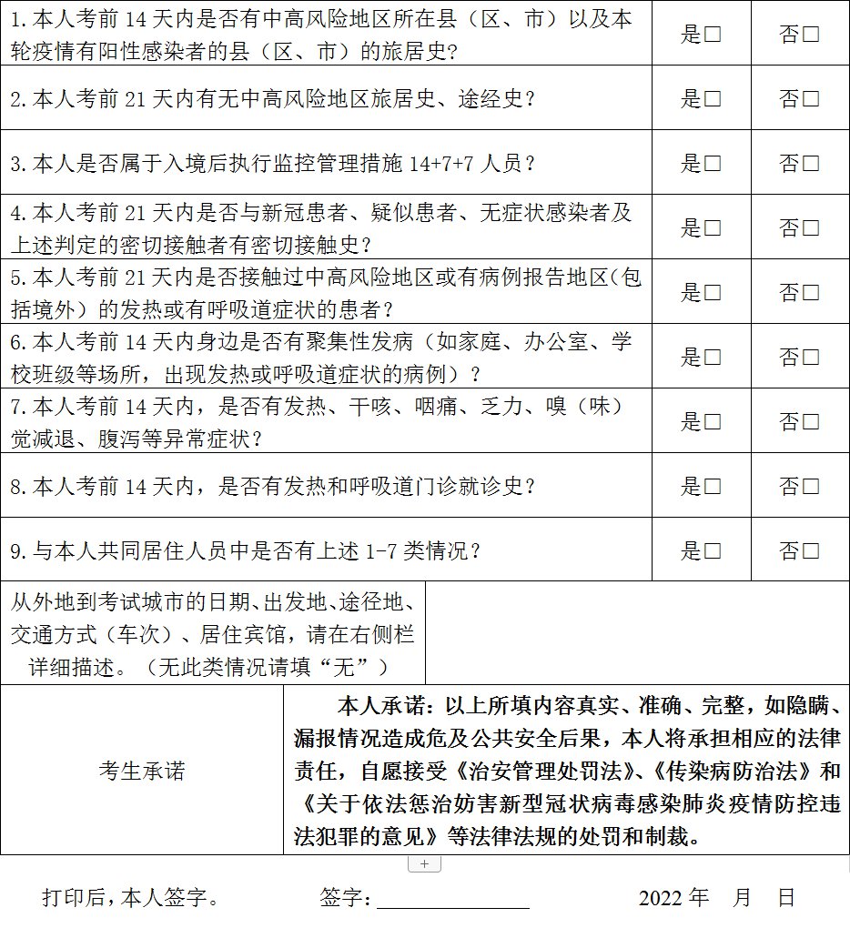 网上报名实行严格的自律机制,考生必须遵守报名系统中《个人健康信息承诺书》相关要求,对提交审核报名信息的真实性、准确性负责。