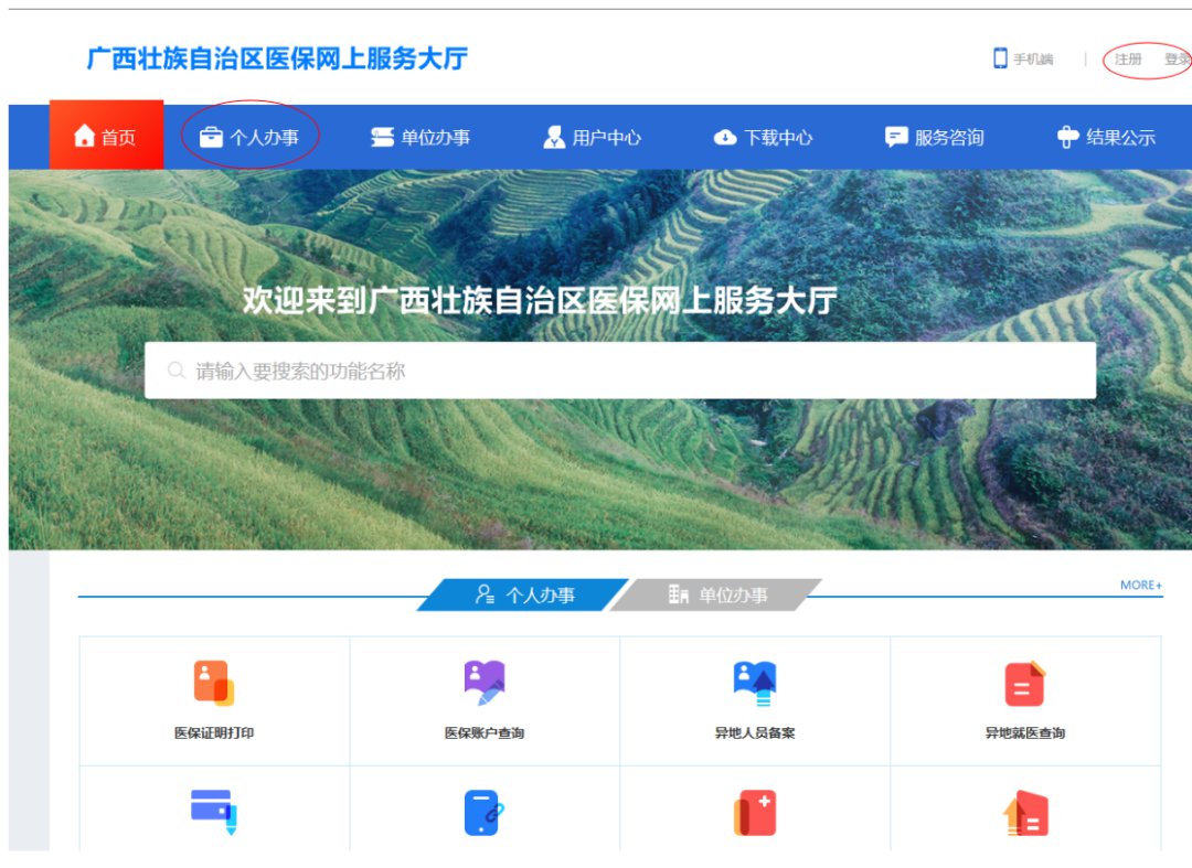 (1)登录广西壮族自治区医保网上服务大厅(大厅网址:http://wsdt.ybj.gxzf.gov.cn/ );点击个人办事(需要先注册登录)。