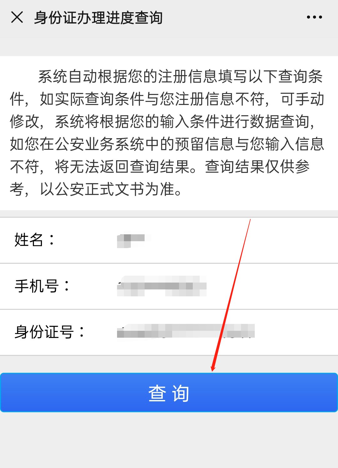 第六步,实名认证成功后,核对个人信息,确认无误后点击“查询”即可。