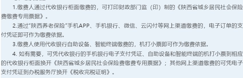 (二)通过“陕西养老保险”APP、手机银行、微信、云闪付等网上渠道缴费的,电子订单的支付凭证即可作为缴费依据。