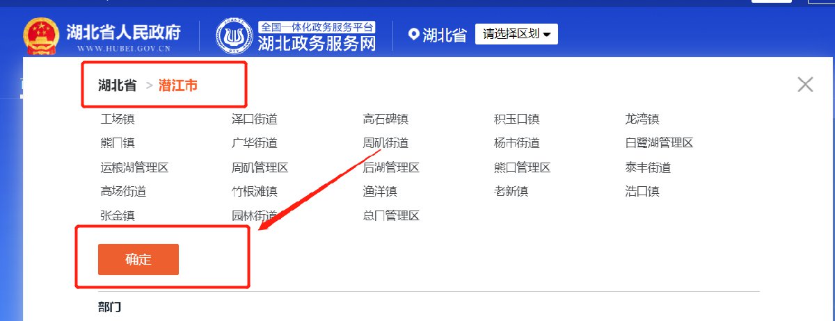 潜江重名查询可以进入湖北政务网,然后选择地区为潜江;