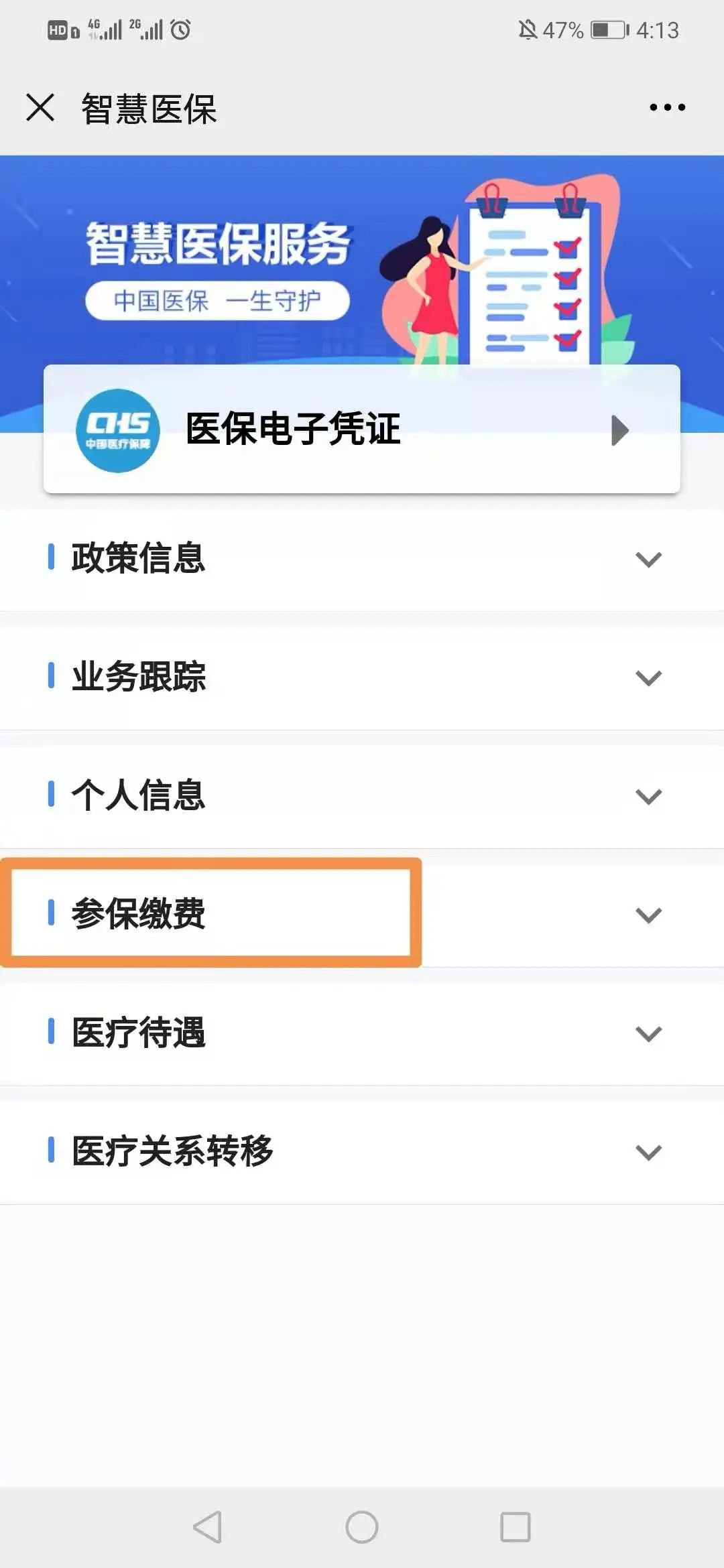 第三步:选择“居民医保参保”;