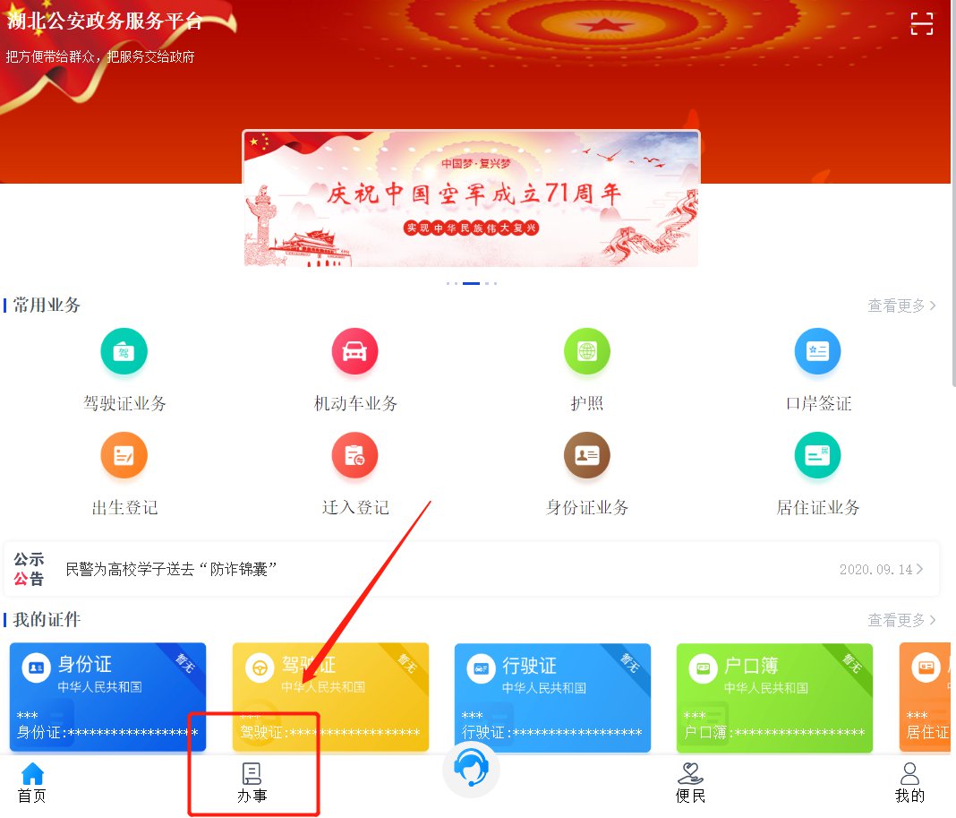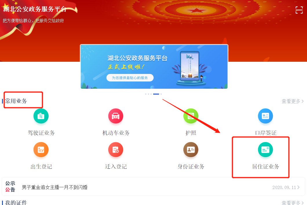 然后,回到首页,在常用业务中,点击“居住证业务”;