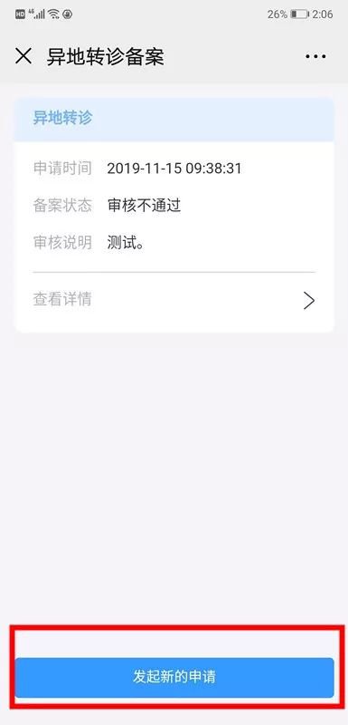 选择异地转院就医“转入城市”和“转入医院”,并填写申请人联系电话。所有信息确认无误后,点击“提交”,申请人员的异地转院备案登记申请将提交至参保地医保管理部审核。