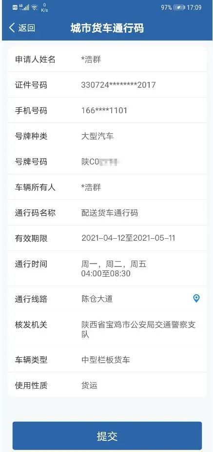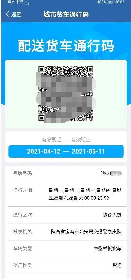 审核通过的,用户点击“交管12123”APP【城市货车通行码申领】进入城市货车通行码首页,点击查看详情,可以查看已核发的货车电子通行码允许车辆通行的时段、路段或区域等具体信息,请驾驶人根据要求驾车通行。在路面遇到民警检查时,可以出示电子通行码供民警扫码核验。