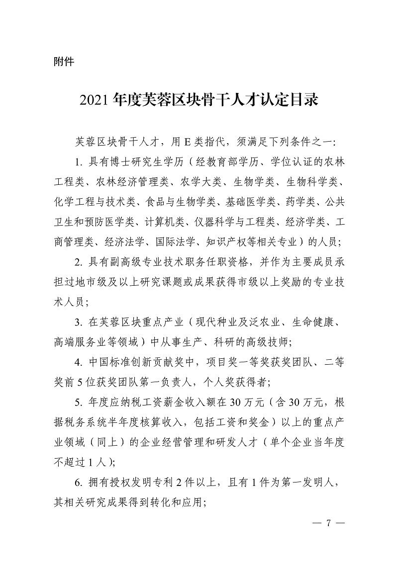 附件: 2021 年度芙蓉区块骨干人才认定目录