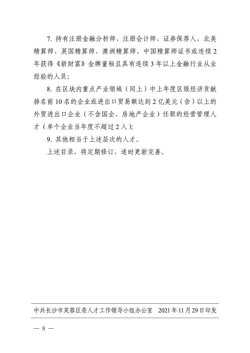 中国(湖南)自由贸易试验区长沙片区芙蓉区块骨干人才认定实施办法(试行)》的通知公布了,湖南自贸区长沙片区芙蓉区块骨干人才认定对象范围如下: