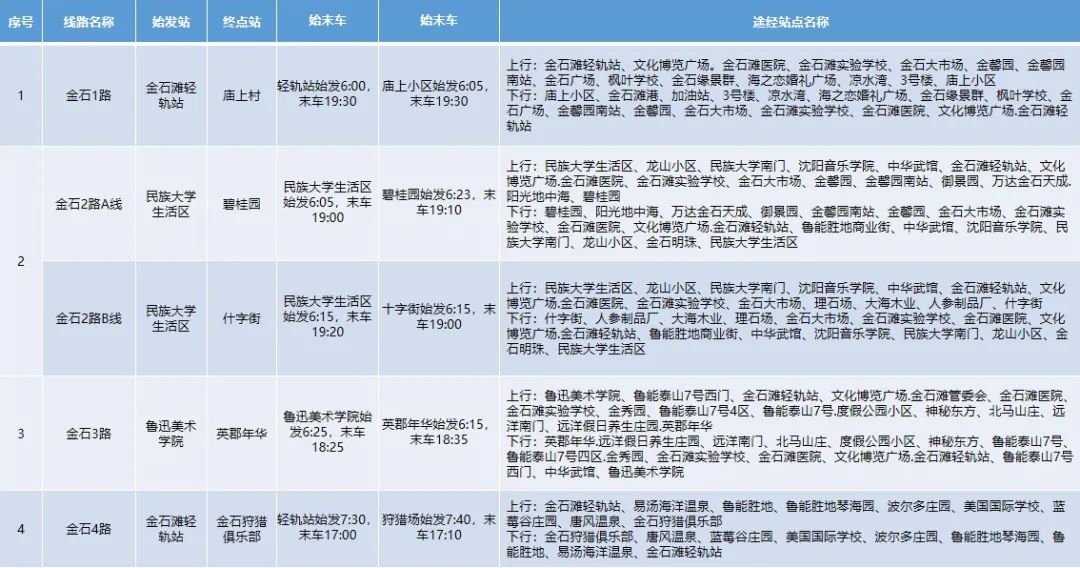 金石滩度假区区内、过境、无人驾驶公交线路信息