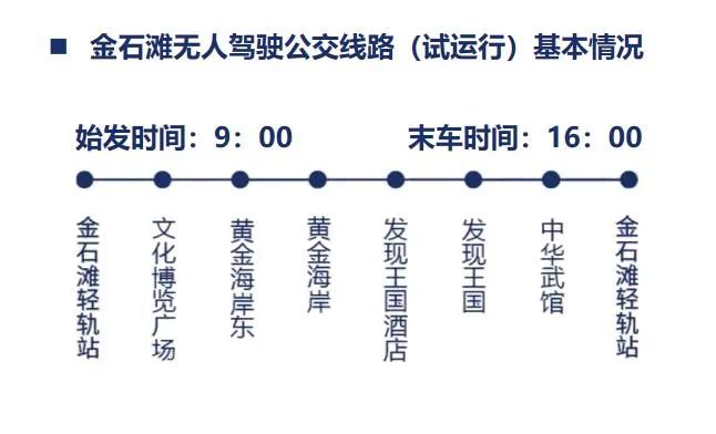 ▲ 金石滩无人驾驶公交线路基本情况(试运行俩月不载客,测试通过后可体验)