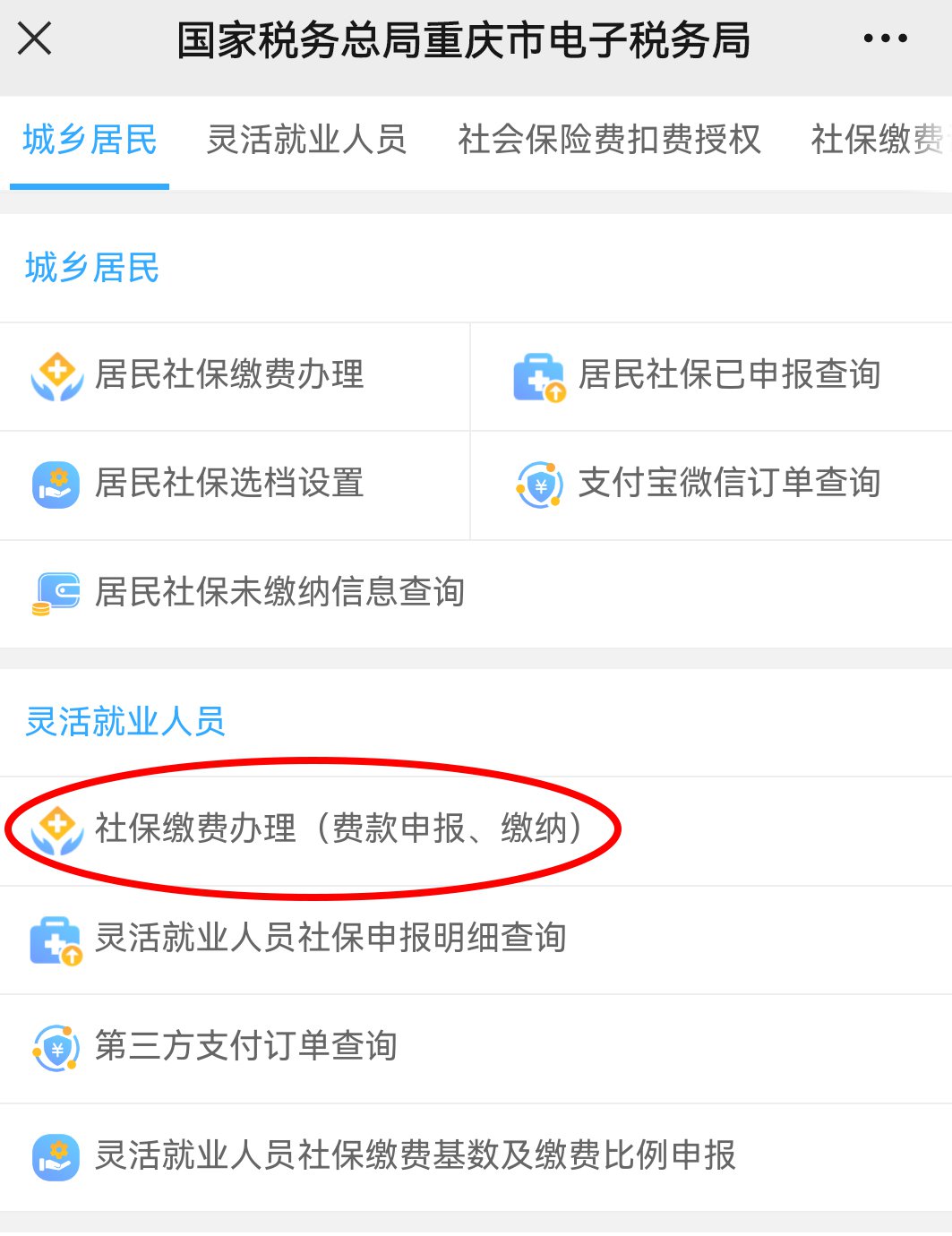 若参保人通过“重庆税务”官方微信公众号缴纳社保费,可按照以下步骤进行操作: