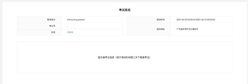6.考生缴费后,待老师编排考试信息,老师编排完考生考试信息后,考生可以看到自己的考试信息以及准考证信息。