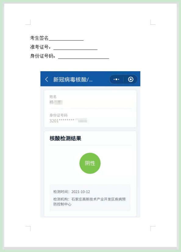 河北教资考试核酸检测证明样例及说明