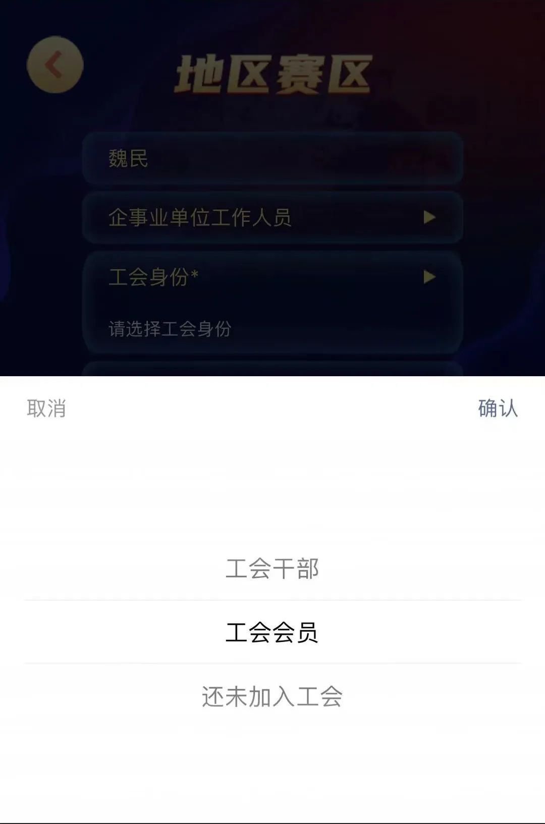姓名、身份属性、工会身份、地区、性别、年龄均为必填项。