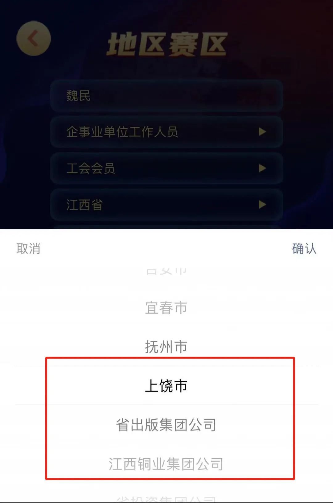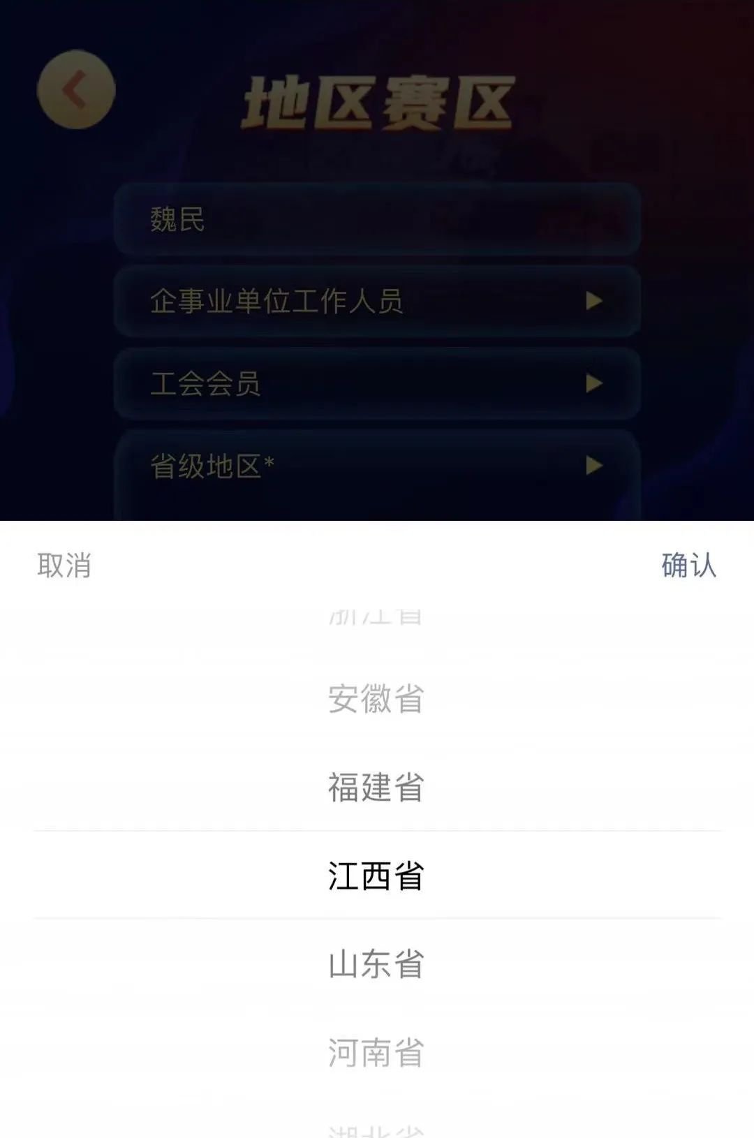 第一步:选择赛区。