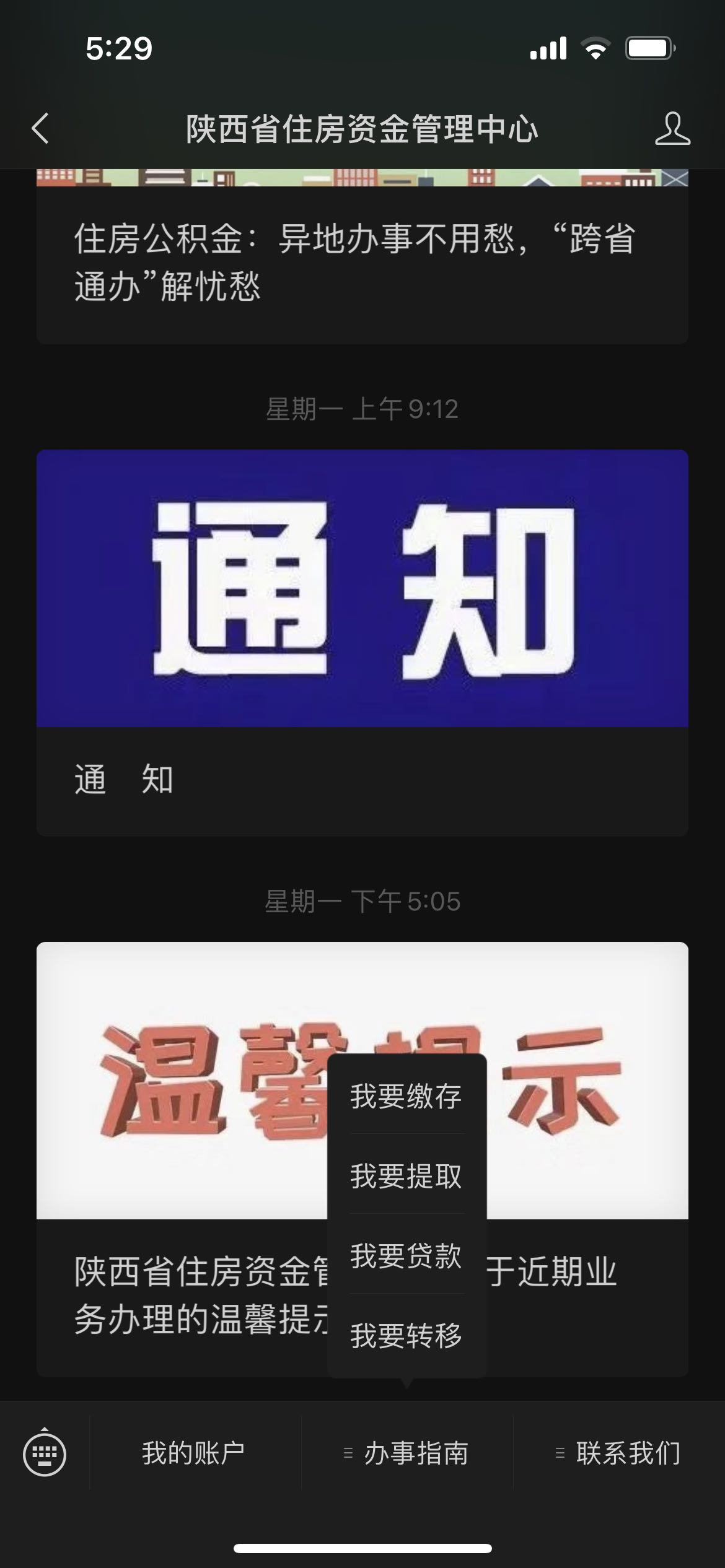1、个人住房公积金业务:个人公积金查询(包括缴存、提取、贷款情况查询)、冲还贷签约、公积金贷款提前还款、退休提取、提取银行卡关联、贷款还款卡变更、账户关联手机号码变更等业务,可以通过“支付宝-市民中心-省直公积金”,或者微信公众号“陕西省住房资金管理中心”办理。