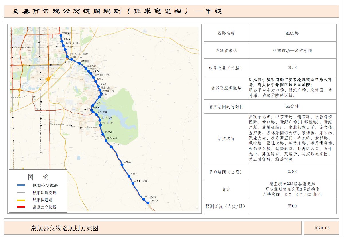 服务区域:起点位于城市内部主要客流集散点中东大市场,终点位于外围区域旅游学院;服务于中东大市场、世纪广场、农博园、净月潭、旅游学院等区域。