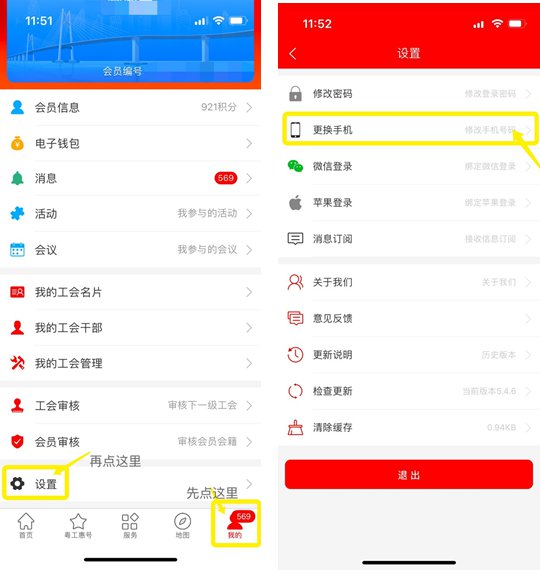 (2)修改粤工惠App会员注册手机号的方法打开粤工惠App,点击「我的」-「设置」-「更换手机号」,输入微信实名认证的手机号,输入手机验证码和粤工惠的登录密码,点击「提交」即可;