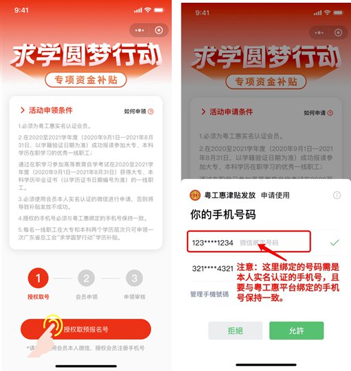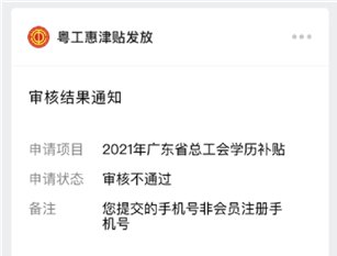 注意:若微信的手机号码与在粤工惠绑定的手机号码不一致,请于12月3号前,通过粤工惠App修改绑定手机号,否则将因为身份校验失败,导致审核不通过。