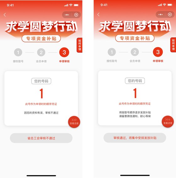 省总工会对整个申领补贴和发放进程进行在线监督,提交申领的一线职工本人可从申报渠道实时查看补贴申领、发放进度。