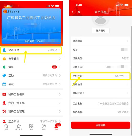 (1)查看粤工惠app会员注册手机号