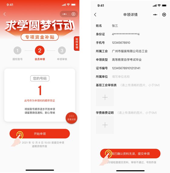 完成取号后,系统将验证申领人是否已在粤工惠平台实名注册,是否申领过广东省总工会“求学圆梦行动”学历补贴,学历学籍是否符合申领条件。<="" p>