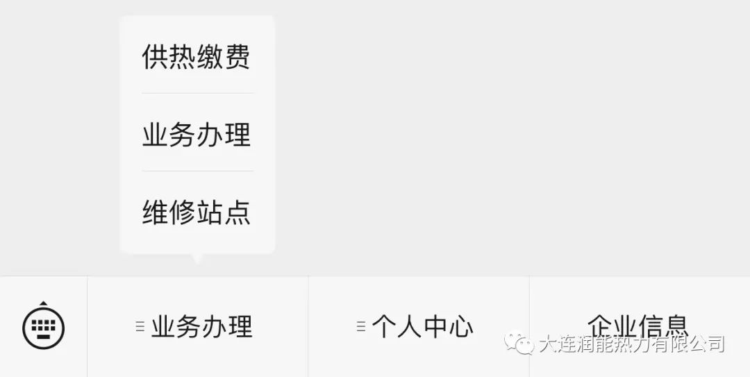 1、点击微信公众号页面下方【业务办理】→【业务办理】,如下图