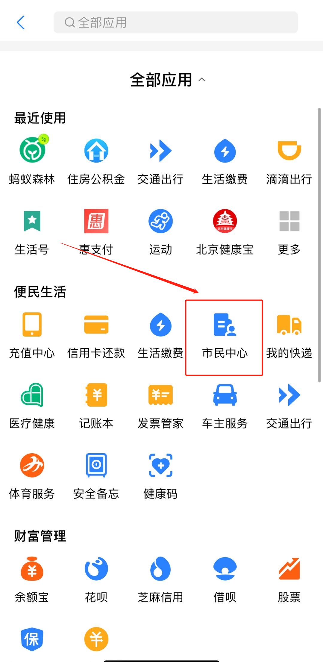 第二步,在“便民生活”中点击“市民中心”