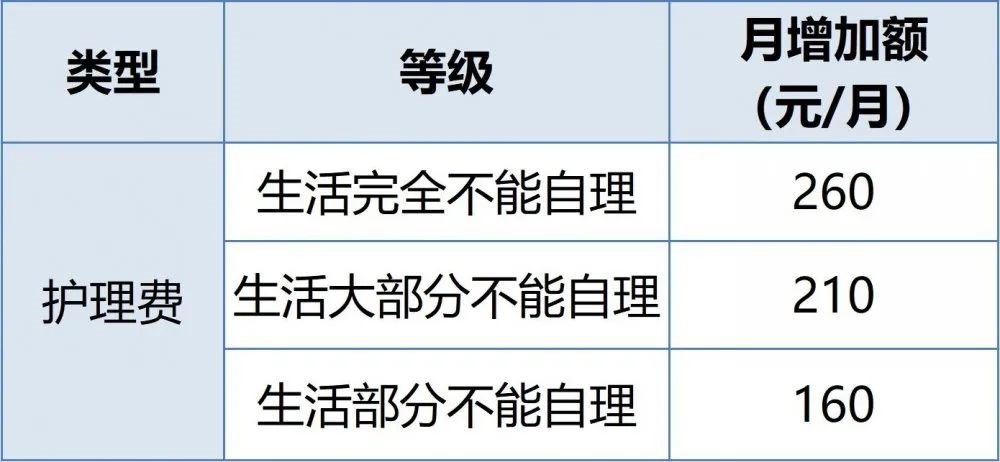 2、生活护理费调整标准: