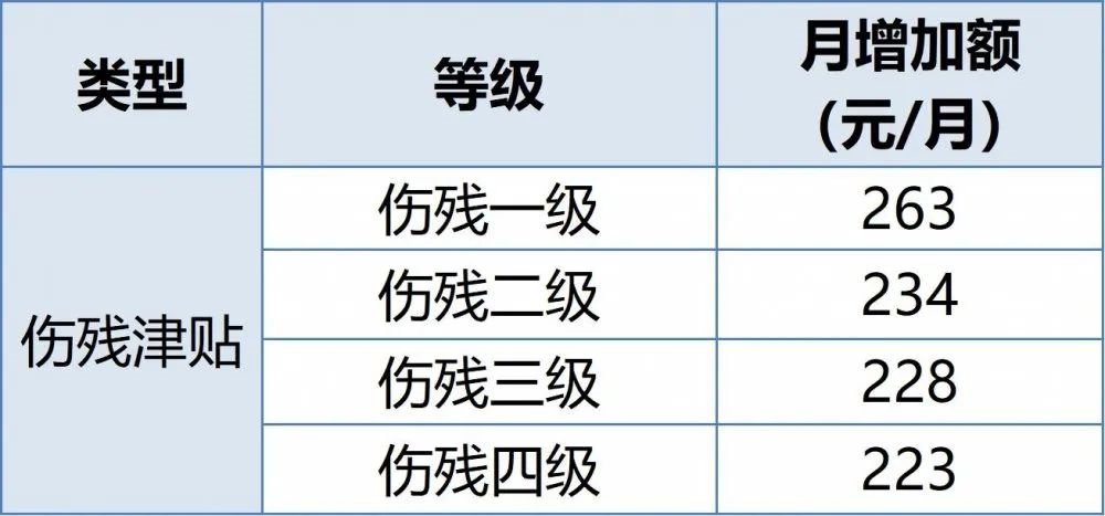 1、伤残津贴调整标准: