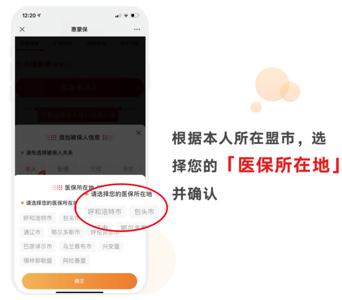 第三步:根据本人所在盟市,选择您的“医保所在地”并确认;