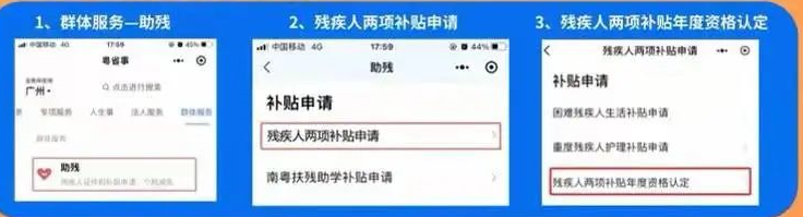领取两项补贴的残疾人朋友,需在每年4月1日至6月20日期间主动申报资格认定,优先通过微信“粤省事”小程序在线申报,也可携带本人的居民身份证直接在本省任一乡镇人民政府(街道办事处)受理窗口申报资格认定。