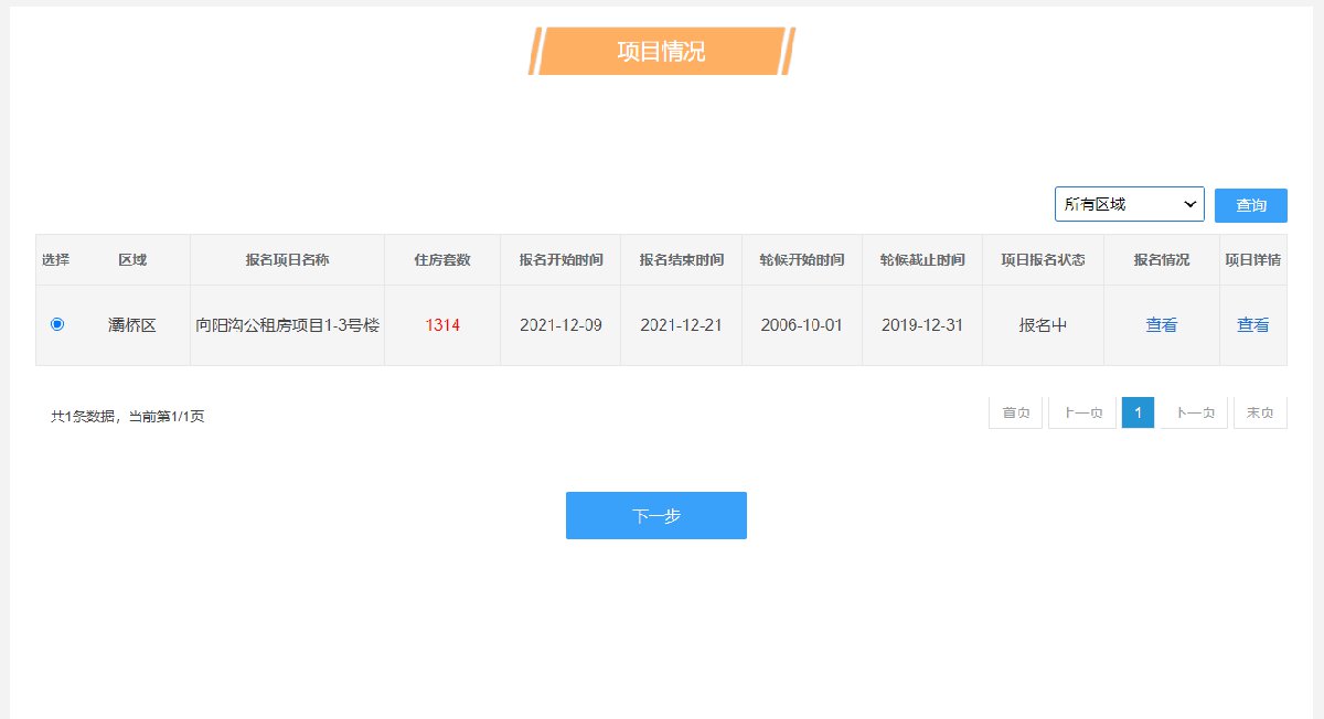 4、查看现有项目,之后勾选意向公租房,点击下一步,阅读报名须知与承诺书,跳转个人信息填写栏目