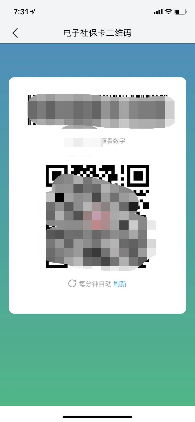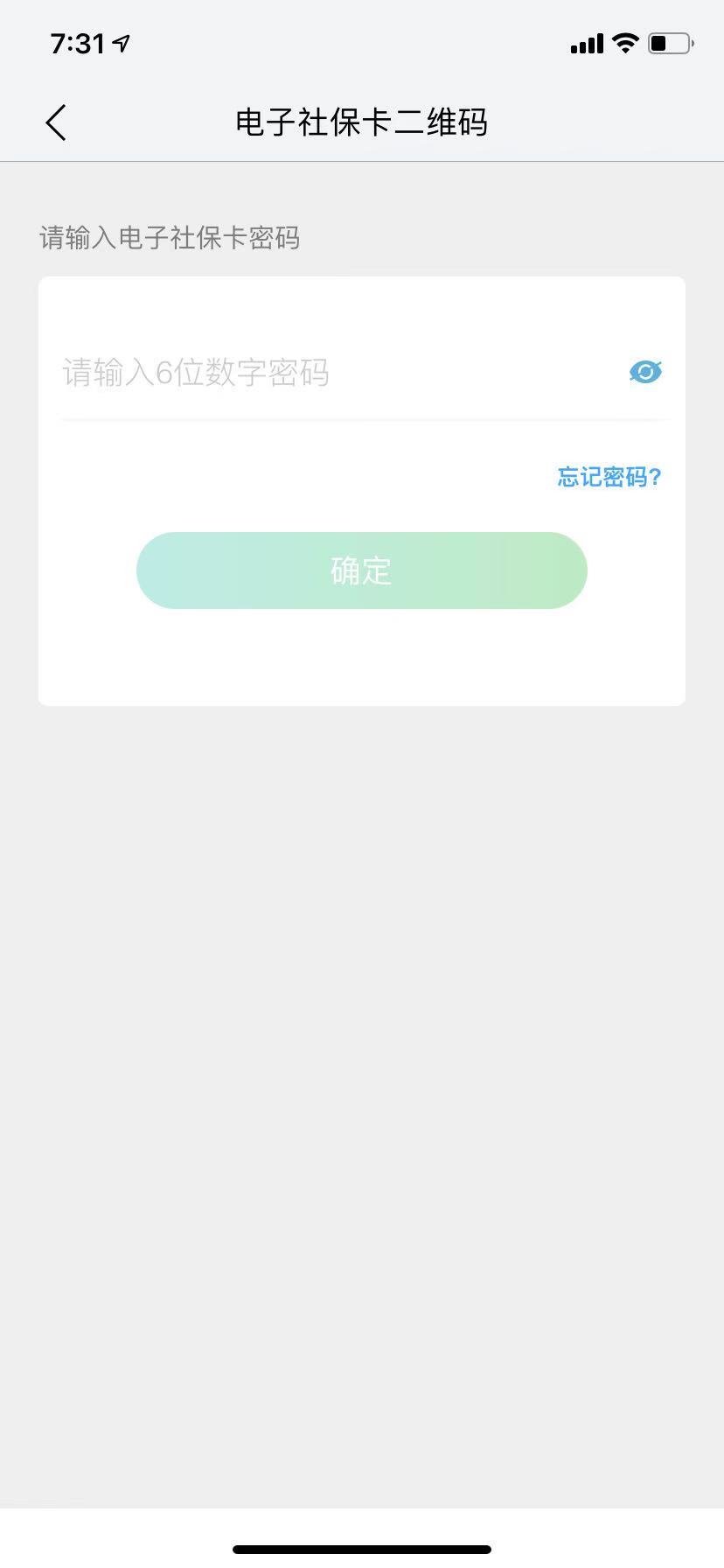 3、点击卡片下方二维码图标,输入电子社保卡密码(首次使用需先设置电子社保卡密码),即可出示个人电子社保卡二维码。结算时需在电子摄像头前面向摄像头站立3秒左右,以核实身份与刷卡人一致。
