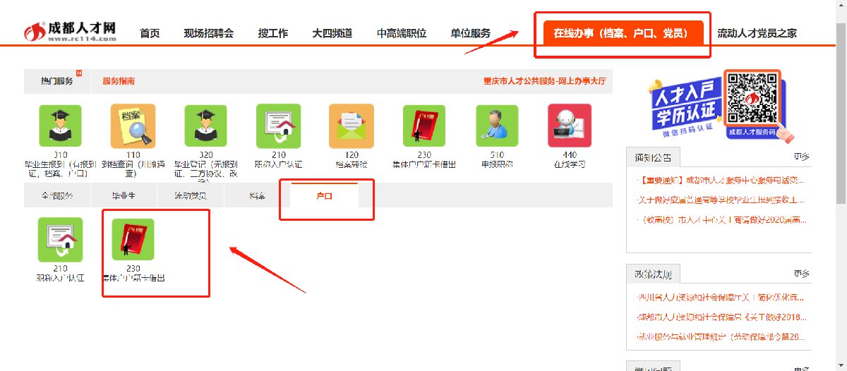 成都人才中心集体户口页网上借出流程