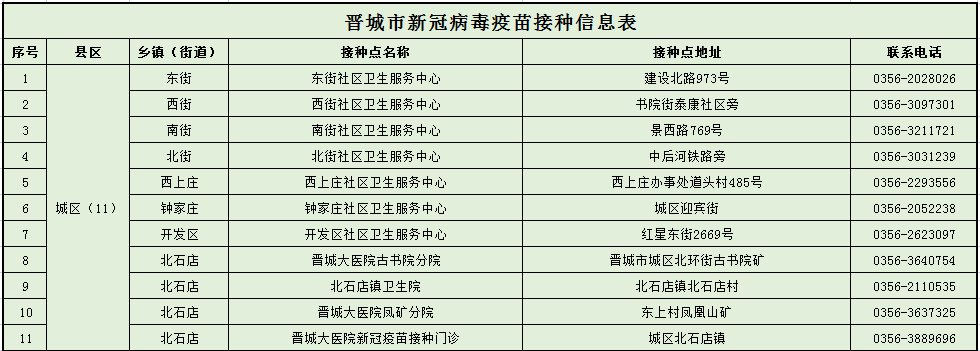 晋城市新冠疫苗加强针哪里可以接种?