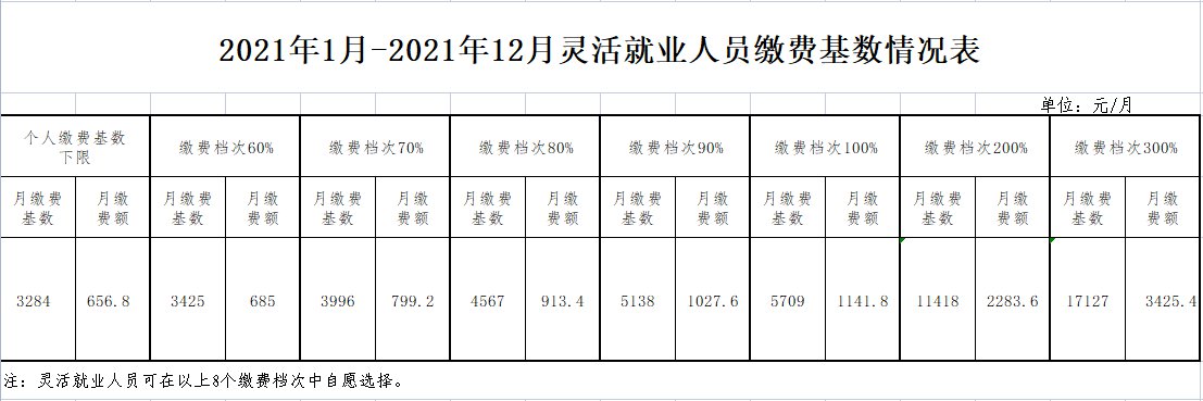 灵活就业人员(2022年标准暂按照2021年标准缴纳)