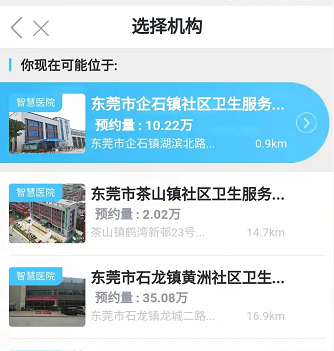 4.点击“东莞市企石镇社区卫生服务中心门诊”。